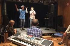 グループレッスンでも、個々に対応。ライブハウスのようなレッスン会場で気分上々。